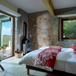 A ground floor suite on the corner of the building, giving you just that extra privacy. The Deluxe Suite with double or twin beds, has a sitting area with fire place and a large bathroom with bathtub. Sit on the furnished veranda enjoying the panoramic view. The private garden has a patio with sun beds. Relax and stay in nature on Crete Island. The room is at walking distance of the horses.